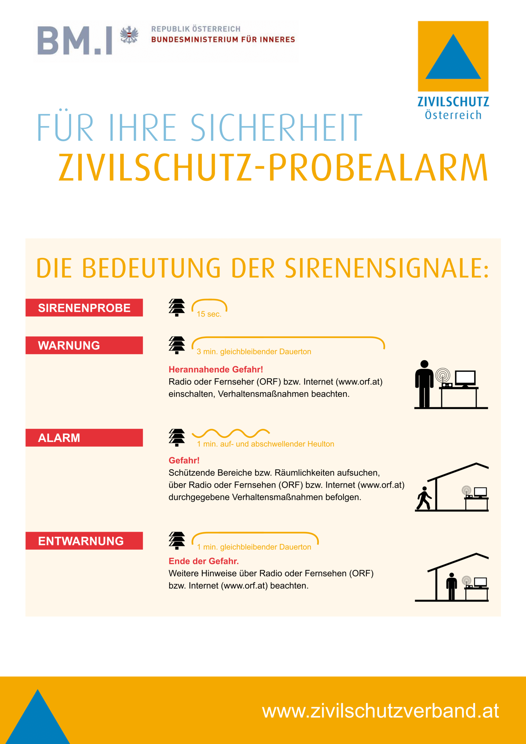 - Bedeutung: Wöchentliche Prüfung der Sirenen (außer in Wien)